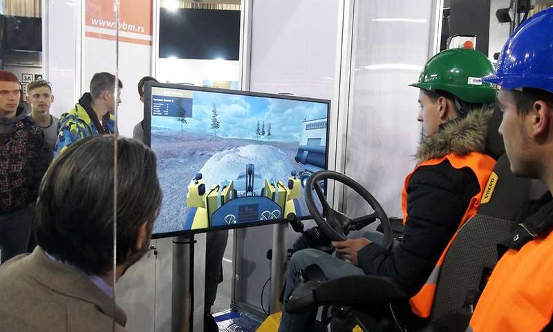 Još jedan od noviteta na štandu EVOCON-a bio je virtuelni simulator za obuku za rad na VOLVO utovarivaču. Prvog dana sajma, organizovano je takmičenje budućih rukovaoca građevinskih mašina na kome je jedna od disciplina bila upravo i upravljanje utovarivačem. U saradnji sa Beogradskim sajmom omogućili smo takmičarima da se u ovoj disciplini takmiče na VOLVO simulatoru. Pored takmičara, svi zainteresovani posetioci su bili u prilici da isprobaju simulator i uvere se u lakoću rukovanja VOLVO građevinskim mašinama.