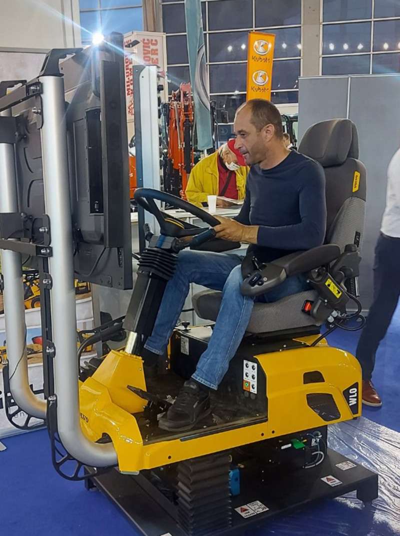 Još jedan od noviteta na štandu EVOCON-a bio je virtuelni simulator za obuku za rad na VOLVO građevinskim mašinama. Simulator je bio izložen na našem štandu tokom svih dana trajanja sajma i svi zainteresovani posetioci bili su u prilici da isprobaju simulator i uvere se u lakoću rukovanja. Zahvaljujući unapređenoj 3D grafici i hidraulično upravljanoj platformi upravljačko iskustvo je izuzetno verodostojno i omogućuje obuku za sve vrste radova na efikasan način.