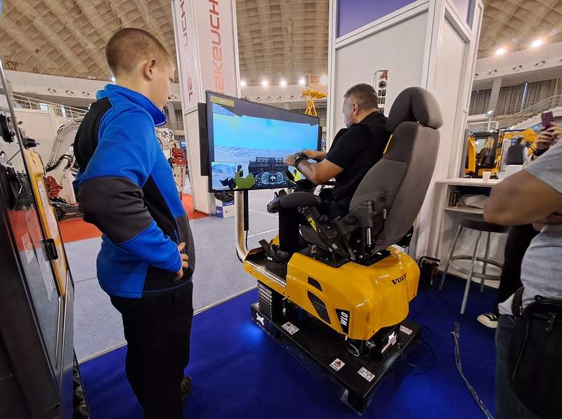 Još jedan od noviteta na štandu EVOCON-a bio je realni virtuelni simulator za obuku za rad na VOLVO utovarivačima i damperima. Simulator je bio izložen na našem štandu tokom svih dana trajanja sajma i svi zainteresovani posetioci bili su u prilici da isprobaju simulator i uvere se u lakoću rukovanja. Zahvaljujući unapređenoj 3D grafici i hidraulično upravljanoj platformi upravljačko iskustvo je izuzetno verodostojno i omogućuje obuku za sve vrste radova na efikasan način.
